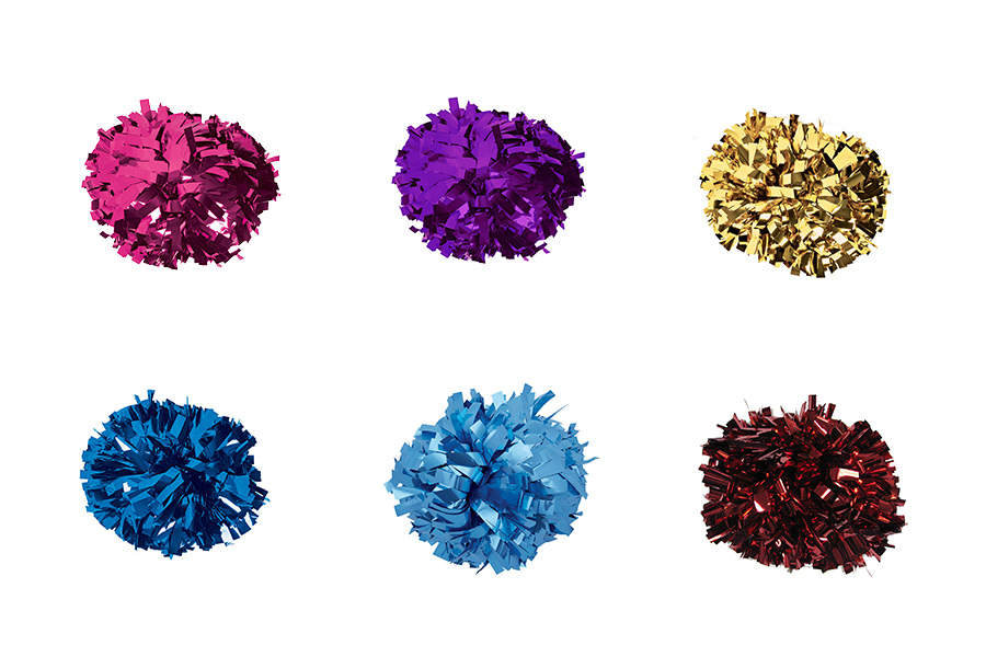 Our cheerleading pom-poms come in a wide range of premium materials to suit every team’s needs and preferences. Choose from vibrant metallic mylar for eye-catching shine under stadium lights, soft polypropylene (PP) plastic for lightweight, durable performance, or fluffy nylon fabrics for a full, voluminous look.