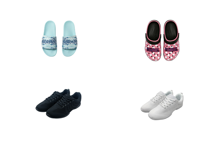 Complete system of cheerleading shoes, socks & team slides.