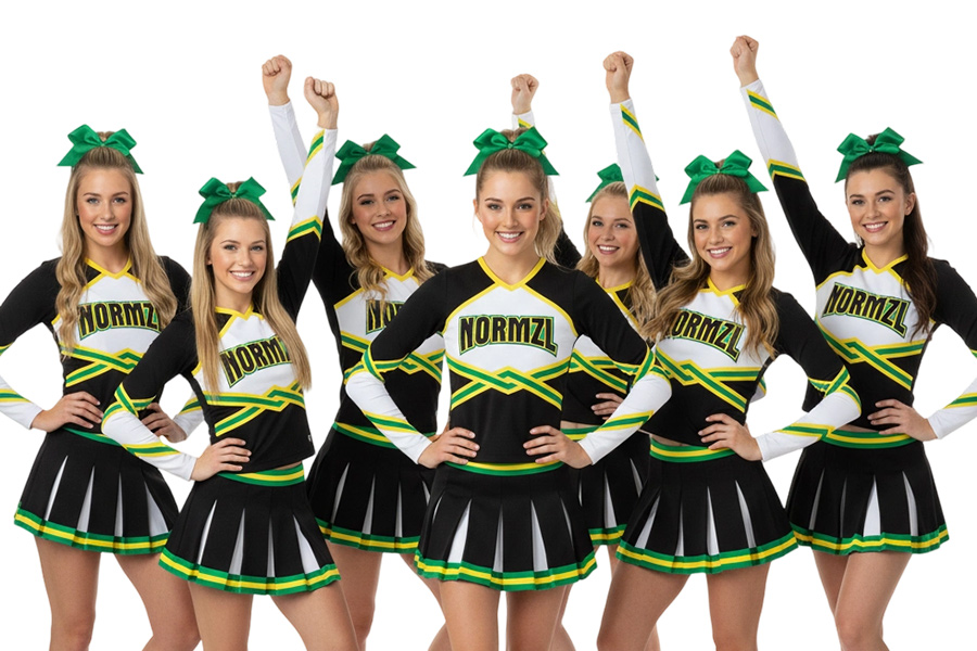 Athletic fits tailored for male cheer athletes.